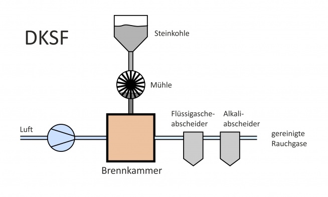 | + | [[Datei:DKSF.jpg|654px|thumb|right|Prinzip der Druckkohlenstaubfeuerungsanlage]] | ||