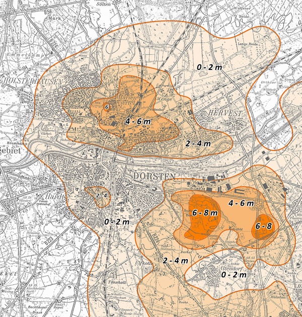 Von 1911 bis 2008 wurde unter dem Stadtgebiet von Dorsten Kohle abgebaut. Damit verbunden waren Bergsenkungen, die Maßnahmen erforderten zur:
