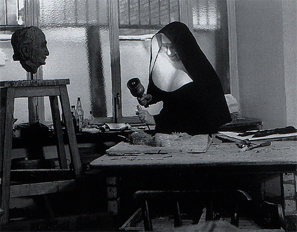 „Ich glaube es war im Jahre 1959, als ich an die Klosterpforte der Ursulinen in Dorsten klopfte. Den Anlass hierzu gab mir, dass die Kreissparkasse in Recklinghausen, der ich damals vorstand, dabei war, die letzte Baulücke am Marktplatz in Dorsten mit einem neuen Haus für die Zweigstelle zu schließen. Dem Architekten Manfred Ludes war von der Absicht des damaligen, recht barock denkenden Bürgermeisters Kenntnis geworden, dass der auf seine Weise den Marktplatz vollenden wollte: Dort, wo früher eine Pferdetränke gestanden hatte - und dies war genau vor dem Eingang des neuen Bankhauses - sollte ein monumentaler Brunnen entstehen. Und da solches nun partout nicht in das Konzept des Architekten passte, fragte er mich, ob wir nicht das Unheil verhindern und dem Rat der Stadt vorschlagen sollten, dass die Sparkasse der Stadt den Brunnen schenken würde, wenn, ja wenn diese sich damit einverstanden erklären würde, dass die Spender Gesicht und Form des Brunnens bestimmen könnten. Aber wer könnte denn wohl da unseren Gedanken aufgreifen und ihn gestalten wollen, und können? »Da sitzt in Dorsten eine bildhauernde Klosterfrau«, sagte mir Sepp Borchmeyer, als ich ihm von unseren Absichten berichtete. Und er erzählte mir ihre Geschichte und auch, wie sie, einstmals eine Evangelische, konvertiert und danach ins Kloster eingetreten war.“